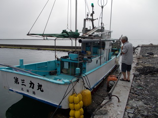 Mさんの船。しかっりと漁船です。津波で流され、ようやく購入したとのこと。