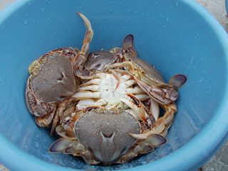 今朝捕ってきたという、カニ、アイナメをいただきました。