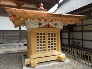 地蔵堂に幕が着けられました。右側が善光寺、左側が普門寺の紋所。