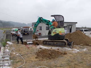 大野仮設公民館の工事が開始です。ようやくここまできました。