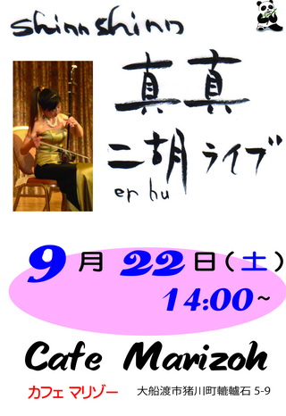 真真さん二胡ライブのチラシを作成します。
