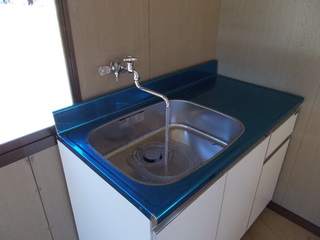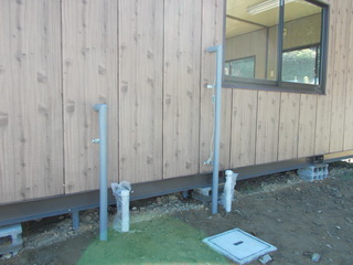 仮設公民館の水道が接続されました。