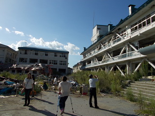 旧陸前高田駅周辺、旧高田病院、旧市役所、市民会館、高田高校と回りました。