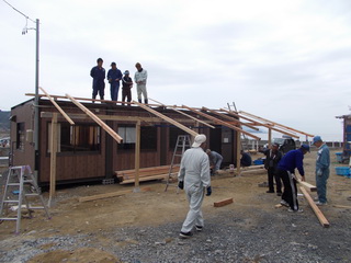 今日、波板も打ち付け、下屋はほぼ完成したとのことです。