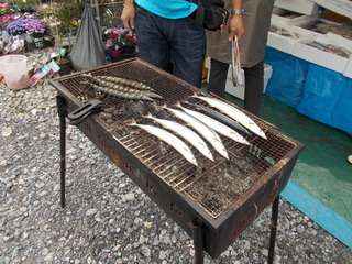 今日は魚力さん、秋刀魚を焼いて販売です。