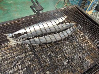 魚力さんは、朝から秋刀魚を焼き、お客さんを待ちます。