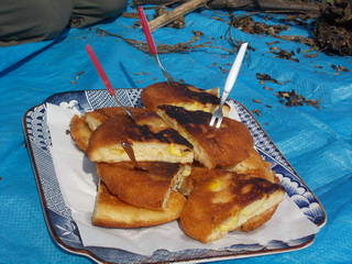 Mさん宅でご馳走になった「ナベヤキ」です。下矢作ではナベヤキとはいわないそうで、小麦餅と呼ぶそうです。