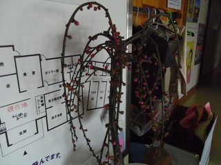 けせん朝市に出店している奥州園さんから購入した「しだれ梅」です。鈴木旅館ロビーに飾りました。