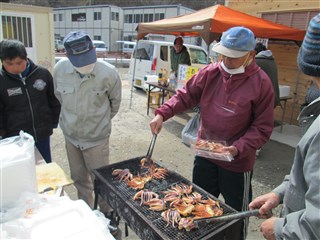 けせん朝市です。暖かくなり、お客さんも増えてきました。