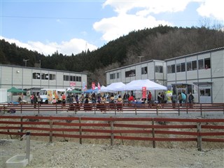 今日は未来商店街のオープンで、いつもの朝市建物内では記念式典が行われます。
