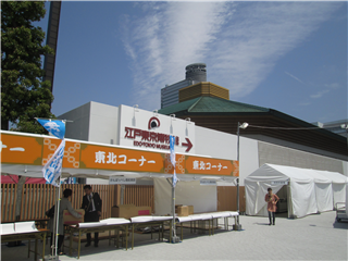 両国長屋ストリート、東北コーナー。といっても陸前高田だけです。後が国技館です。