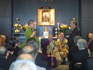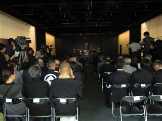 2階に移動し、陸前高田から運ばれた、おやこ地蔵、木造如意輪観世音菩薩座像、要谷観音の入魂法要。