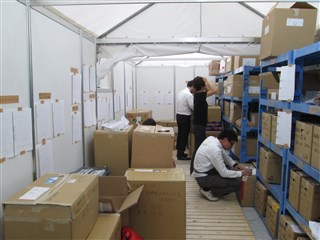 カゴ車で5台ぐらい、150個ぐらいの荷物でしょうか。