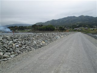小友町から広田半島に向かう新しい道路ができていました。仮防潮堤の横を走っています。まだ砂利道です。