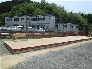 未来商店街のウッドデッキ。