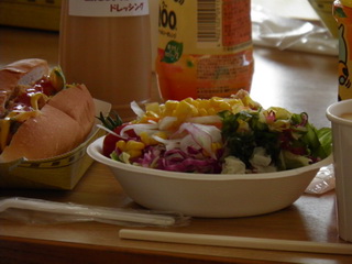 メニューは、ホットドッグ、唐揚げ、サラダ、スープです。久々の豪華食事で、あすなろホームの皆さんも喜んでいました。