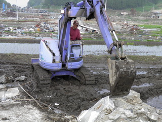 地元米崎町の業者が、委託されたか、地元だから自主的にかわかりませんが、入ってくれたようです。もっと早く入って欲しかった、と言うところですが、違います。