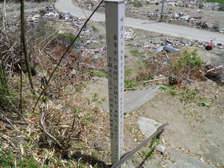 明治19年の、三陸大津波の碑。石段下から31段目まで水が来た、と書かれてあります。今回の津波は、はるかに大きかったです。