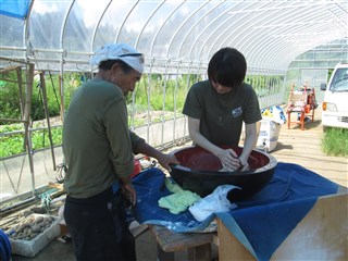 ビニールハウスの中での蕎麦打ち大会です。