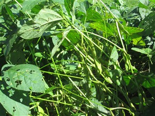 台風により、豆が倒されています。
