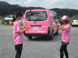 みんなのMAEMUKI駅伝という、ピンクのワゴン車が登場です。