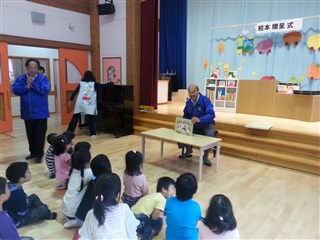 贈呈式の後は、絵本と紙芝居の読み聞かせ。