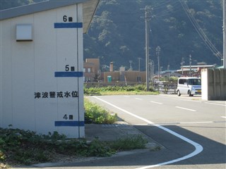 越前海岸の公衆トイレ等にも津波警戒水位が表示されています。