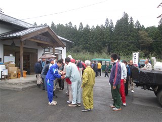 公民館前で記念撮影、そしてチームふくいの皆さんは普門寺により、けせん朝市で買い物をして福井に向かいます。