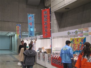 お昼近くは、とても賑わっています。陸前高田ブースもお客さんが来てくれます。