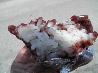 陸前高田では、中がご飯が当たり前だそうです。うるち米と餅米をまぜたご飯に、あんをつけるそうです。粒あんが多いようですが、今日いただいたのは、こしあんです。