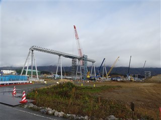 海岸線では、土を運び出すためのベルトコンベアを組み立てる工事が進んでいます。