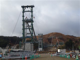 一本松横に作られているベルトコンベア。今泉地区区画整理事業で山を崩して出てきた土を、このベルトコンベアで運び出します。