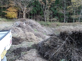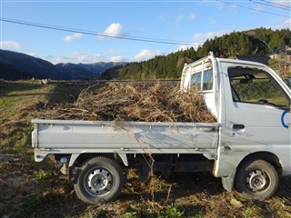 草等を軽トラに積み、大隅の処理場に運び込みます。