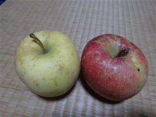 これは、黄色のが「金星」、赤いのが「ふじ」です。
