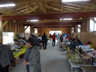 けせん朝市。今日はイベントもあり、賑わっています。私が案内したMさんも大量購入してくれました。