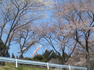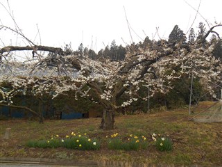 米崎町佐野の梨の花。ここだけ梨の花が咲いています。木の下は水仙です。