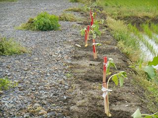 そのために今年のひまわりは田んぼの畔に植えることに。