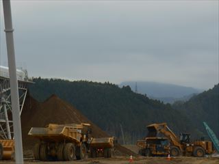 また、遠くてはっきりとは見えないですが、気仙町の高台で動いているバックフォーは、世界で一番大きいそうです。
