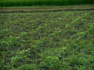 黒豆畑です。豆も成長しましたが、その他の草も伸びています。