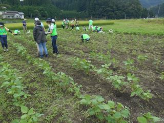 パルコープの皆さんと豆畑の草むしり。