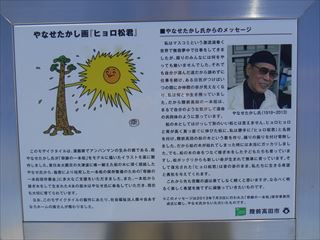 「ひょろ松くん」デザインタイル 2015-03 2015.03.06 3月5日(木)、やなせたかしさんデザインの「ひょろ松くん」デザインタイルの除幕式が行われました。 私は参加できなかったのですが、表示パネルと完成品を撮影してきました。 一本松の新たな観光資源になってくれればうれしいですね。