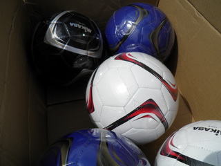 地域の活動にと、サッカーボールを生涯学習課に渡してきました。