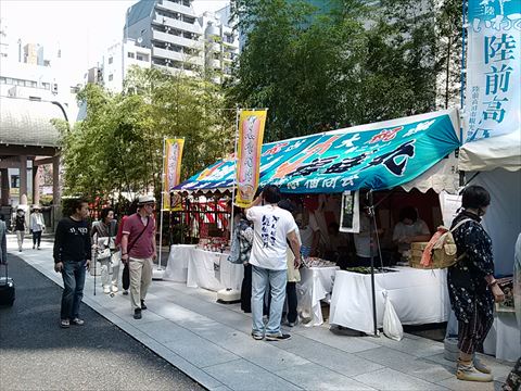 ◆物産販売は、昨年と同じで回向院さんの境内です。今年は気仙沼チームも来ていますので、昨年以上に活気ある販売が出来ました。