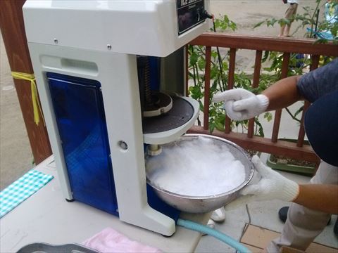 また、最新の電動カキ氷機ですので、氷を削るのも早いです。昨年までの手動とはえらい違いです。とても楽でした。