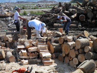 そこに、福井の2人も合流です。家で薪割りをしているというOさんは、マイ斧を持ってきました。