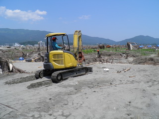 高田松原で作業に入る報告と、重機の手配をお願いしました。