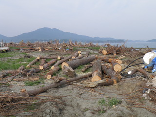 しかし、倒木といえども、砂が入り込んでいる松です。作業は通常の半分ぐらいしか進まないとのことです。