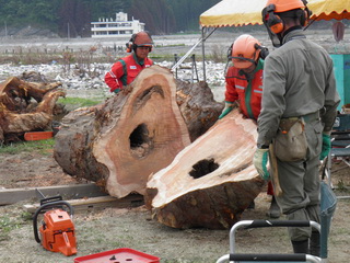 見事なチェーンソー裁きです。