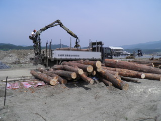 東京に向けて、薪が出荷されます。その立ち会いです。