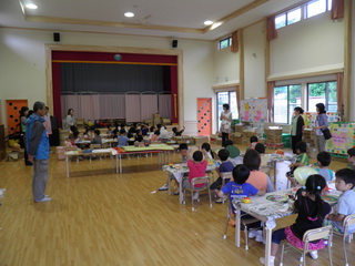 米崎保育園で、越前和紙ウチワ作りを行います。対象は年長さん、ゾウ組さんとキリン組さんです。